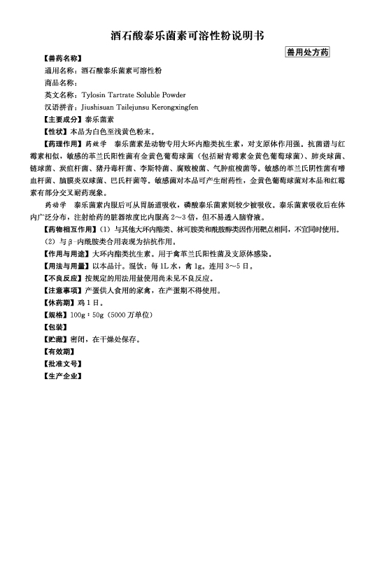 用于巴氏杆菌和大肠杆菌所致的细菌性疾病。