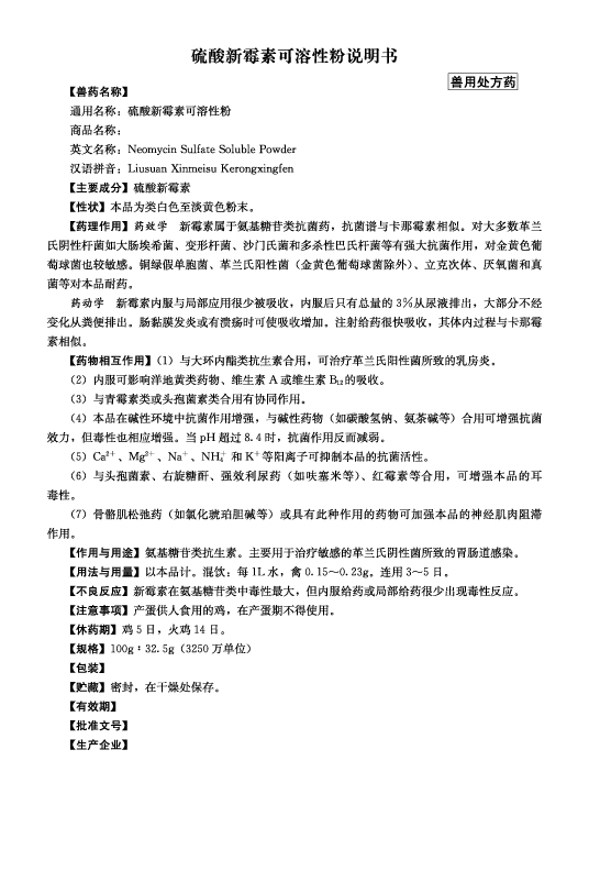 用于治疗鸡敏感细菌所致的细菌性熏染。