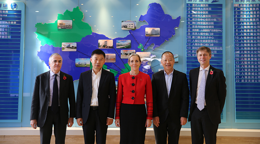 ? ? ? ?11月9日,英国贸易和出口促进部长罗娜?费尔海德一行会见武汉,莅临人福VSport团体旅行会见,人福VSport团体董事长王学海、常务副总裁徐华斌、医疗事业总监陈亮予以接待。双方就工业、研发及医疗项目等多领域的相助空间及相助展望进行了深入交流和谈判。